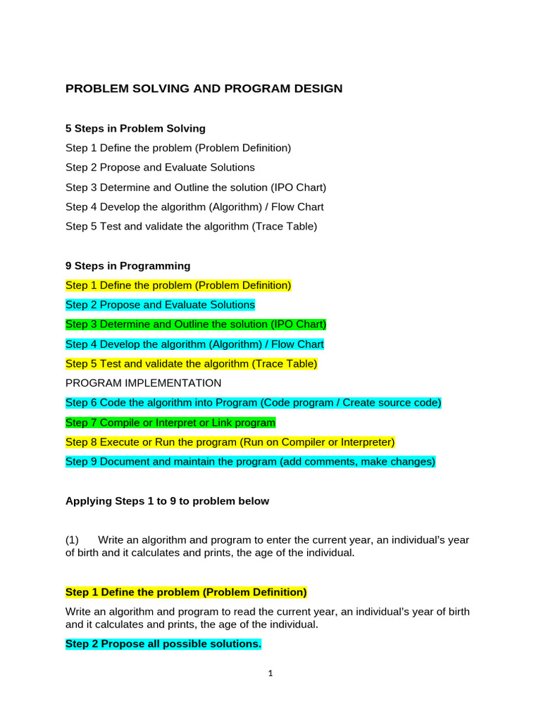 Problem Solving and Programming Steps | PDF | Computer Program ...