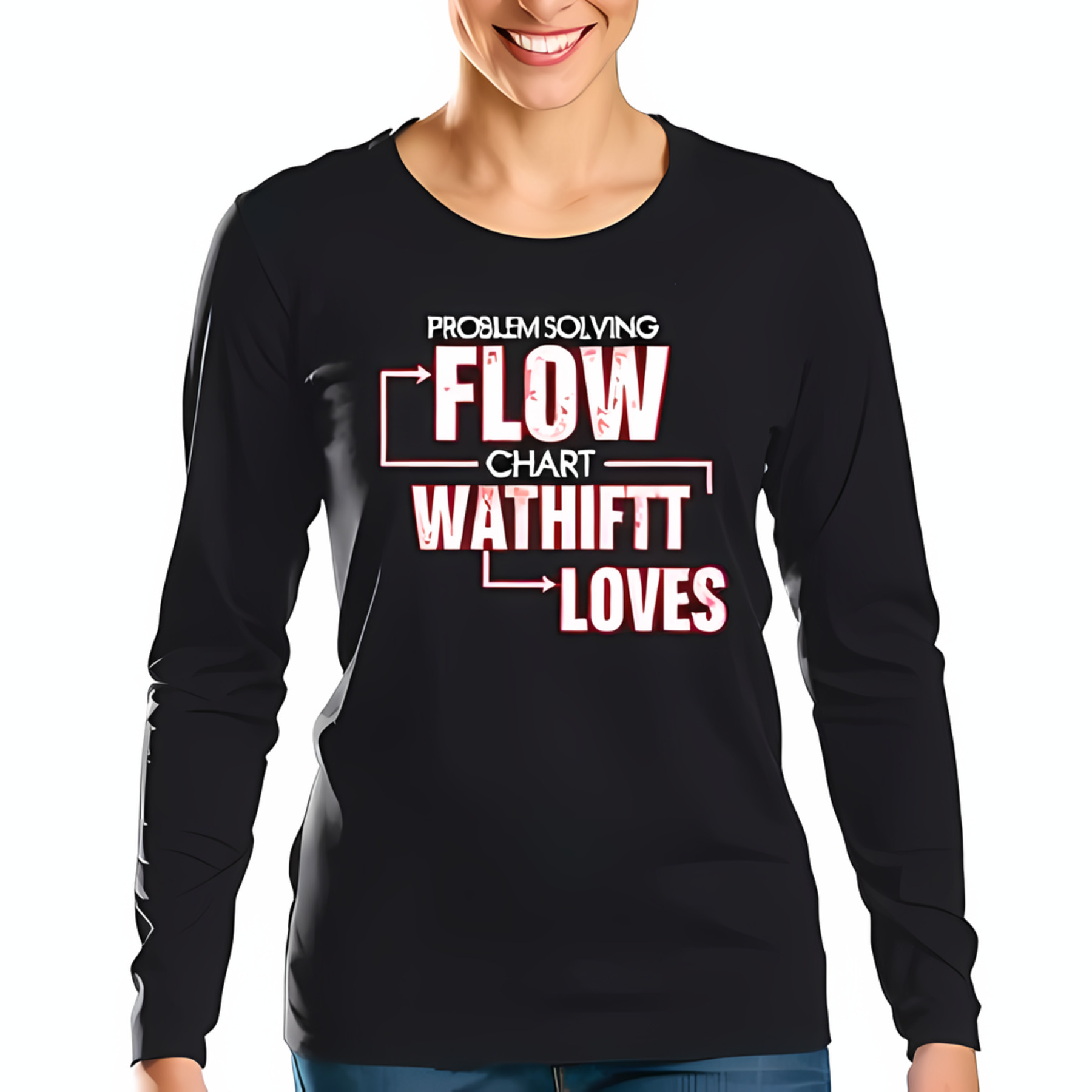 Humorous Black Long Sleeve T-Shirt with Playful Flowchart Design ...