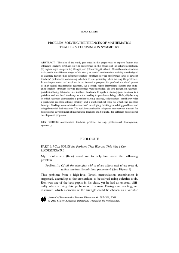 (PDF) Problem-solving preferences of mathematics teachers: Focusing on ...