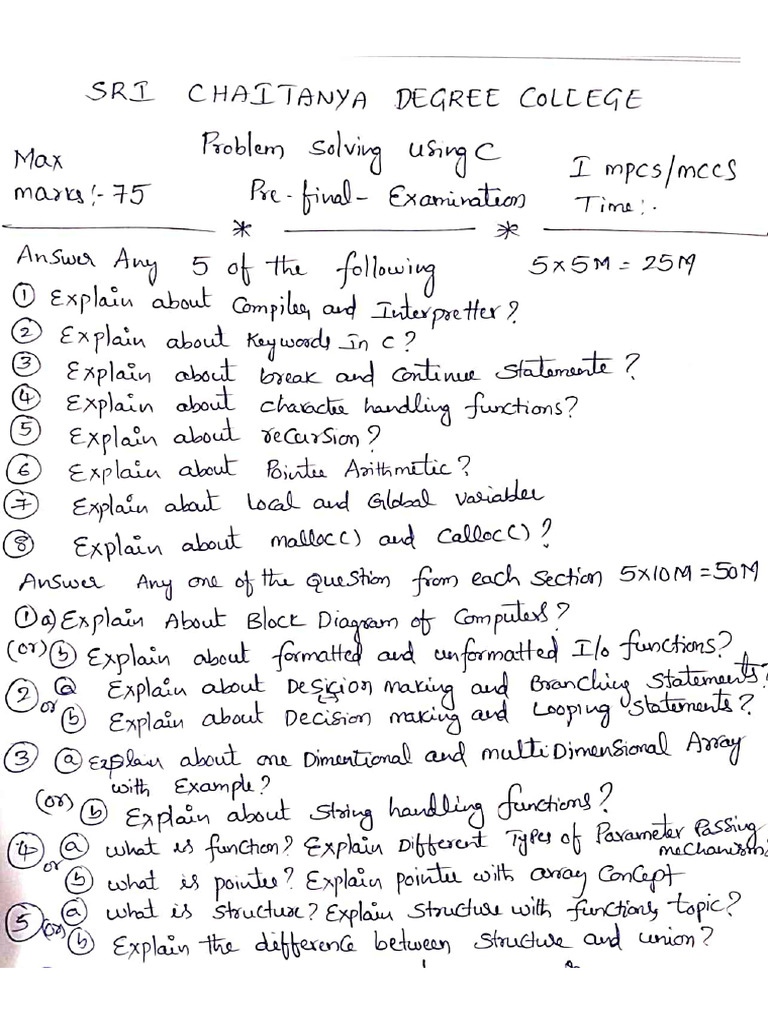 Problem Solving Using C Previous Year Question Paper (BCA 2022 Exam ...