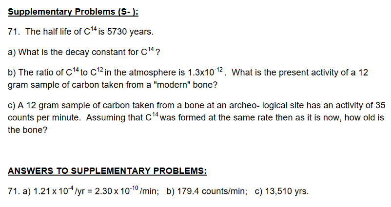 Solved Supplementary Problems(S- 71. The half life of C14 is | Chegg.com