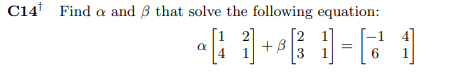 Solved C14 † Find α and β that solve the following equation: | Chegg.com