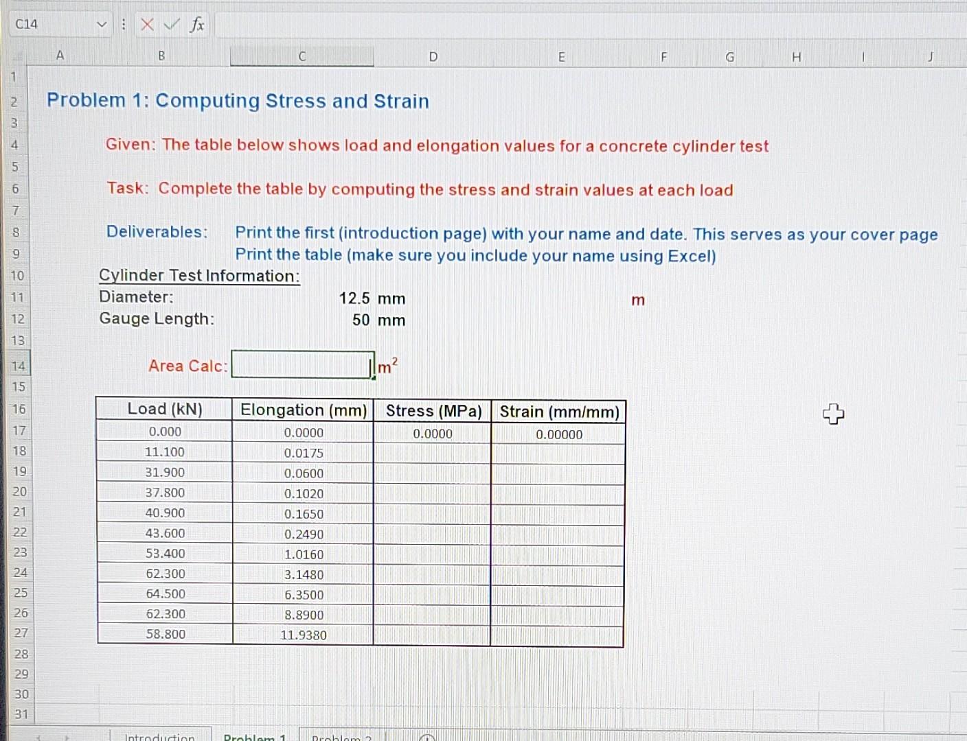 Solved C14 E X fx А B D E F G H J 1 2 Problem 1: Computing | Chegg.com