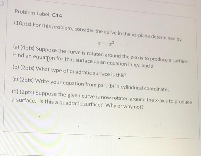 Solved Problem Label: C14 (10pts) For this problem, consider | Chegg.com