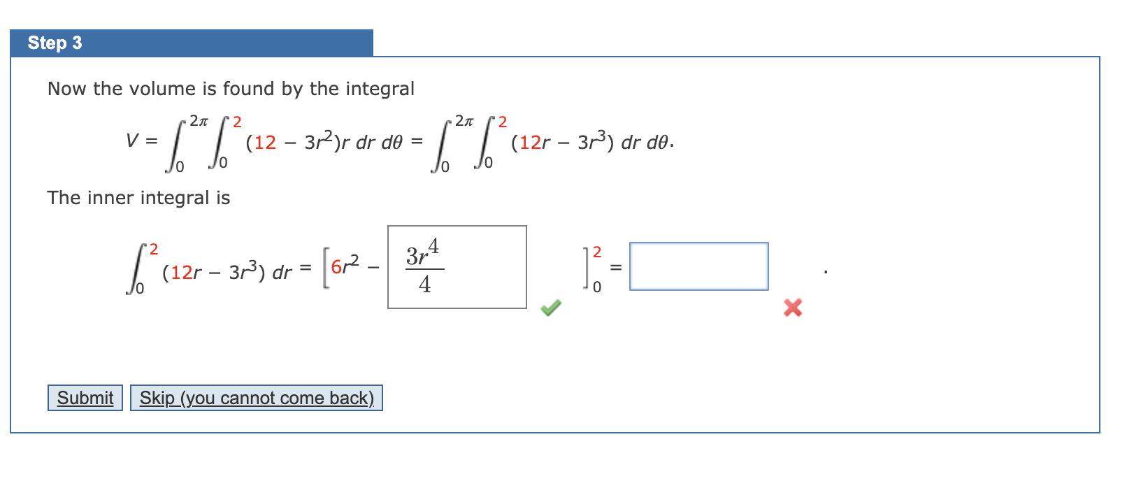 Solved Step 3 Now the volume is found by the integral 2л 2 | Chegg.com