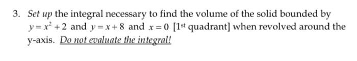 Solved 3. Set up the integral necessary to find the volume | Chegg.com
