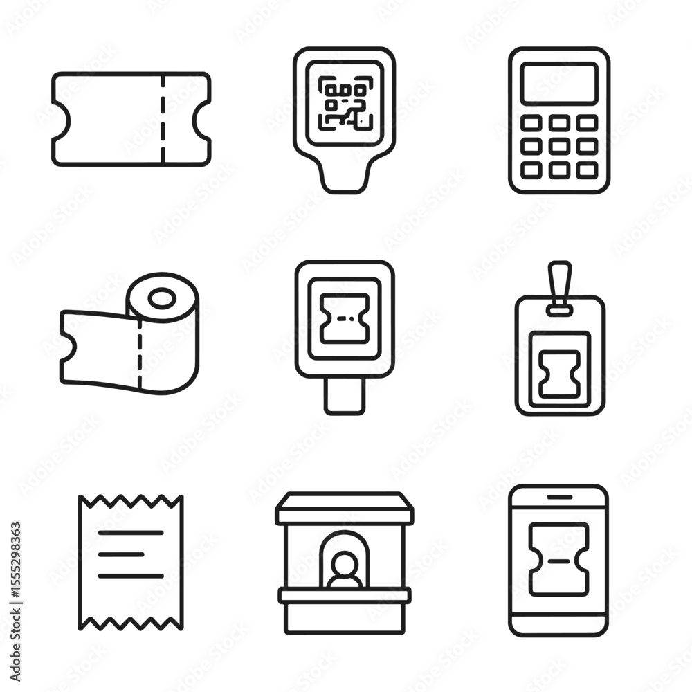 Train Station Ticket Icons. Line style icons of train station ticketing ...