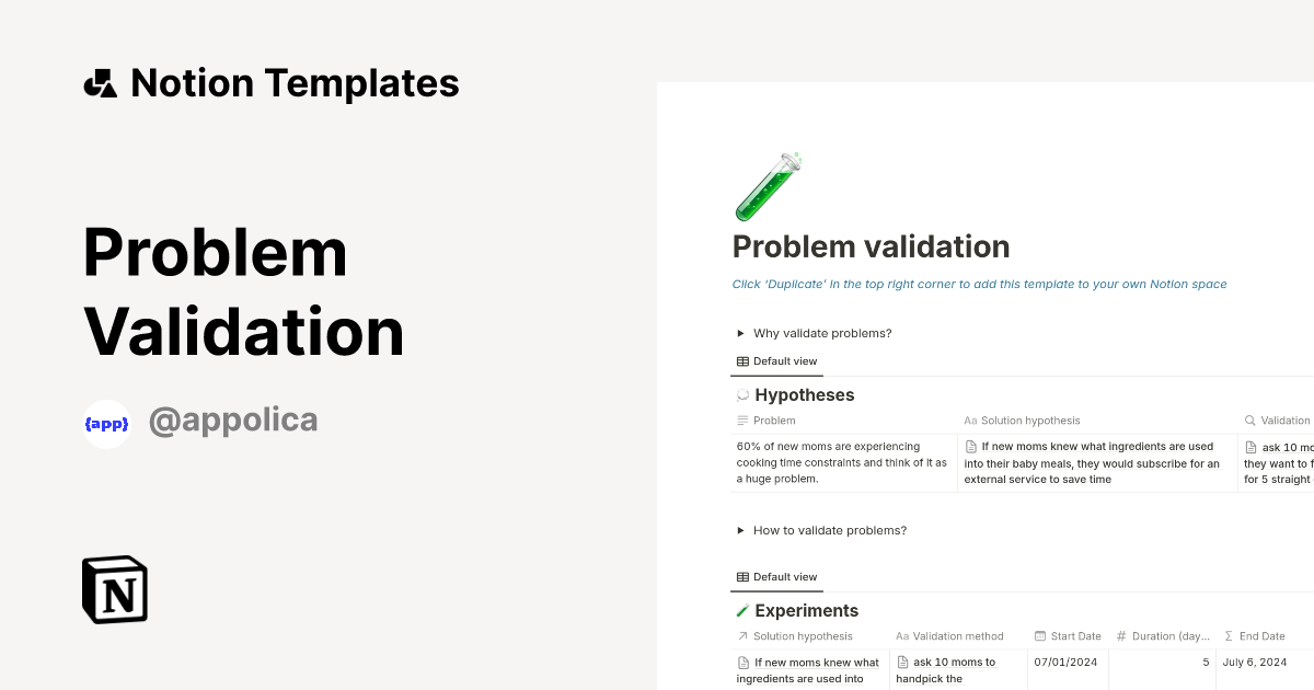 Problem Validation Template by Appolica | Startup Studio | Notion ...