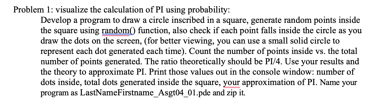 Solved Problem 1: visualize the calculation of PI using | Chegg.com