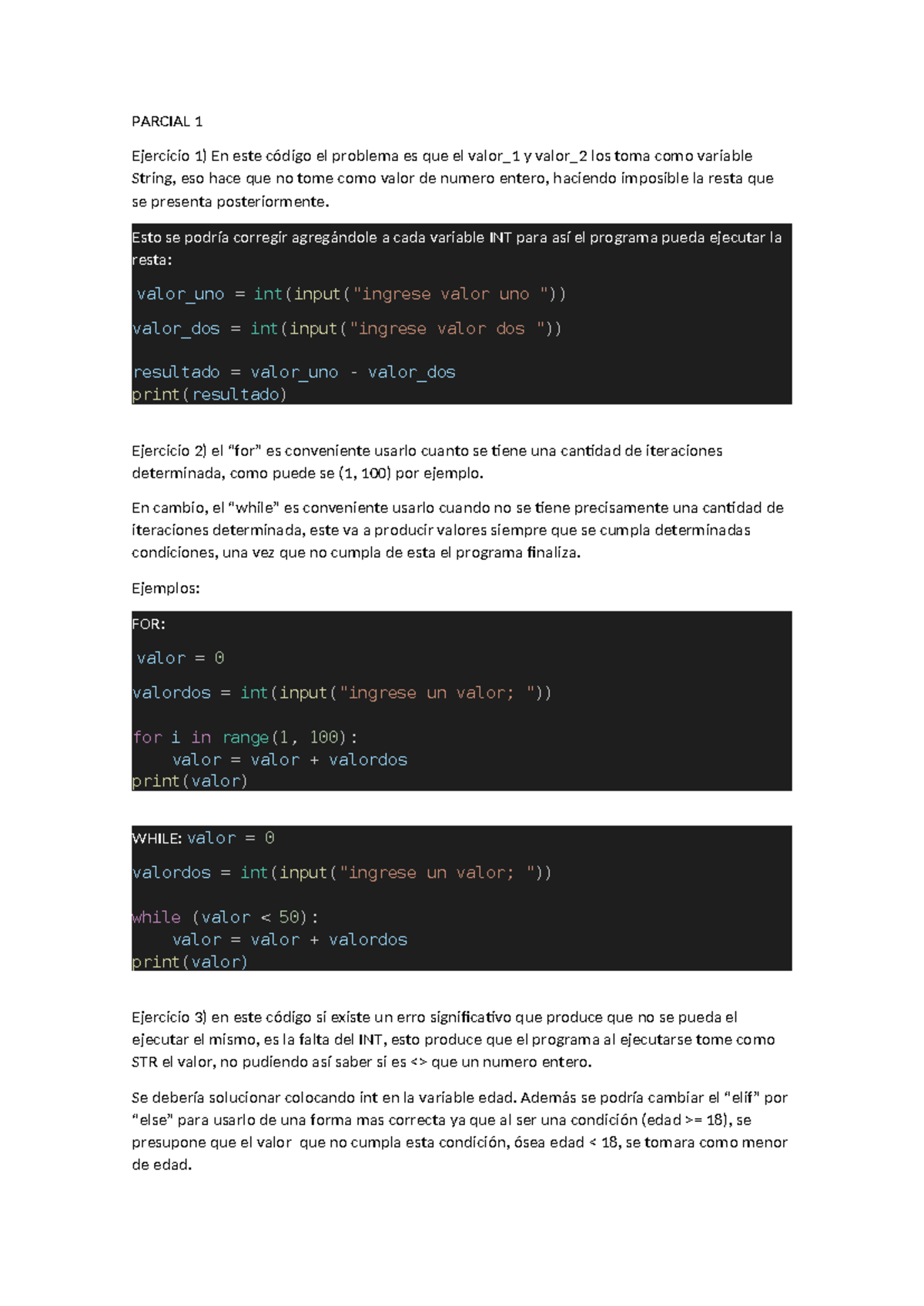 Medio Curso POO - Guía de Respuestas y Errores de Código - Studocu