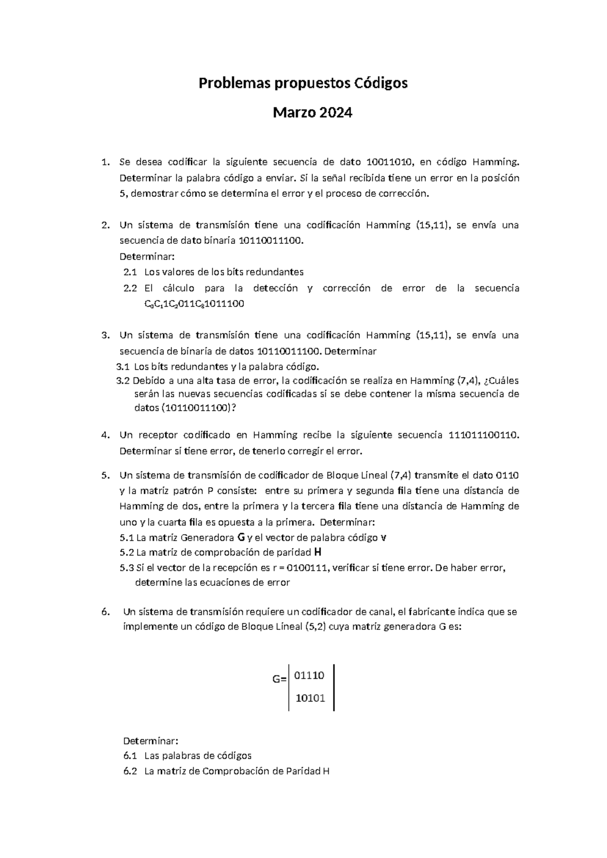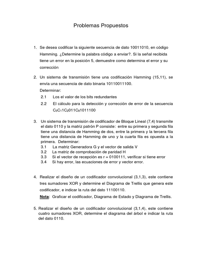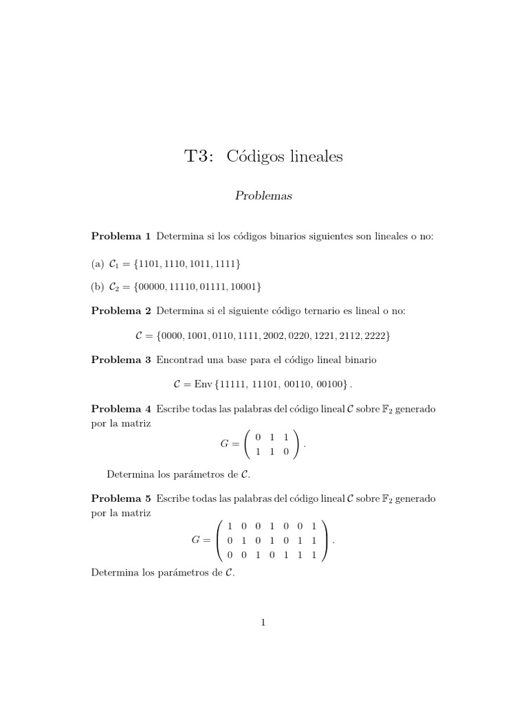 Problemas de Códigos Lineales y Matrices | PDF | Matriz (Matemáticas ...