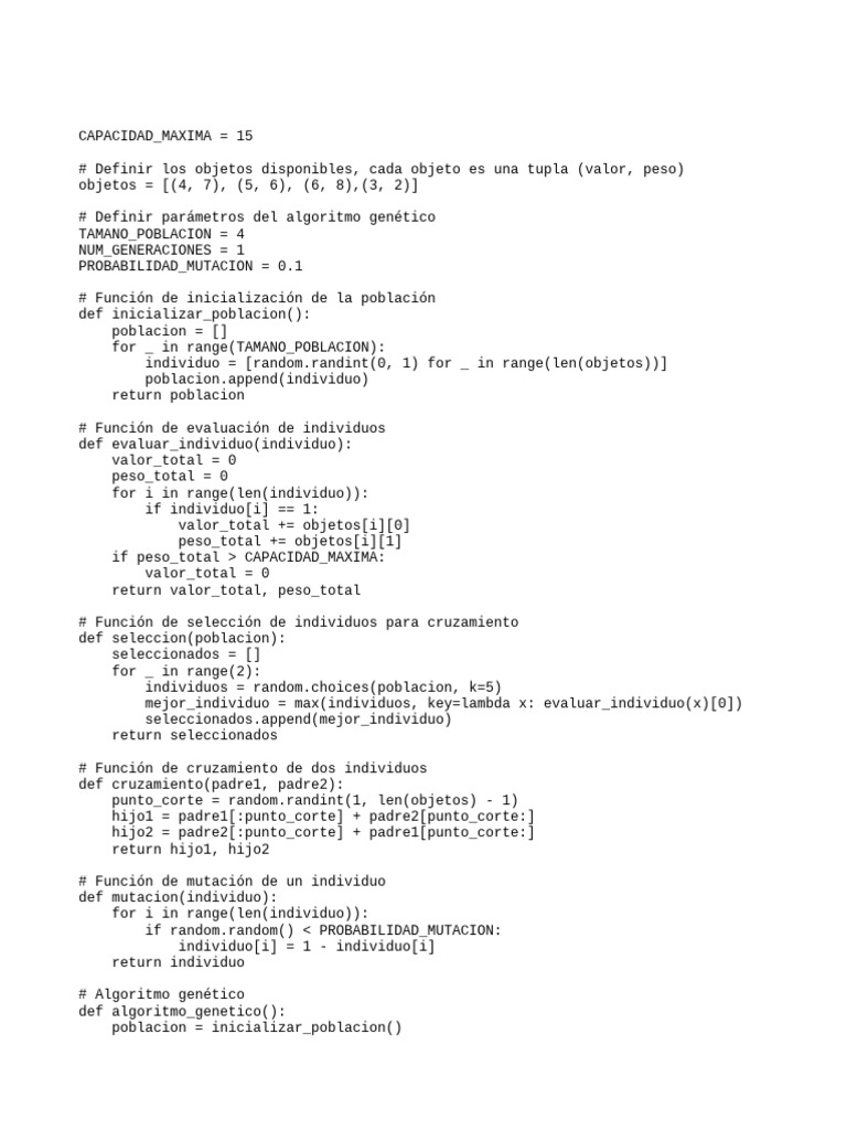 Codigo Problema Mochila | PDF | Programación de computadoras ...