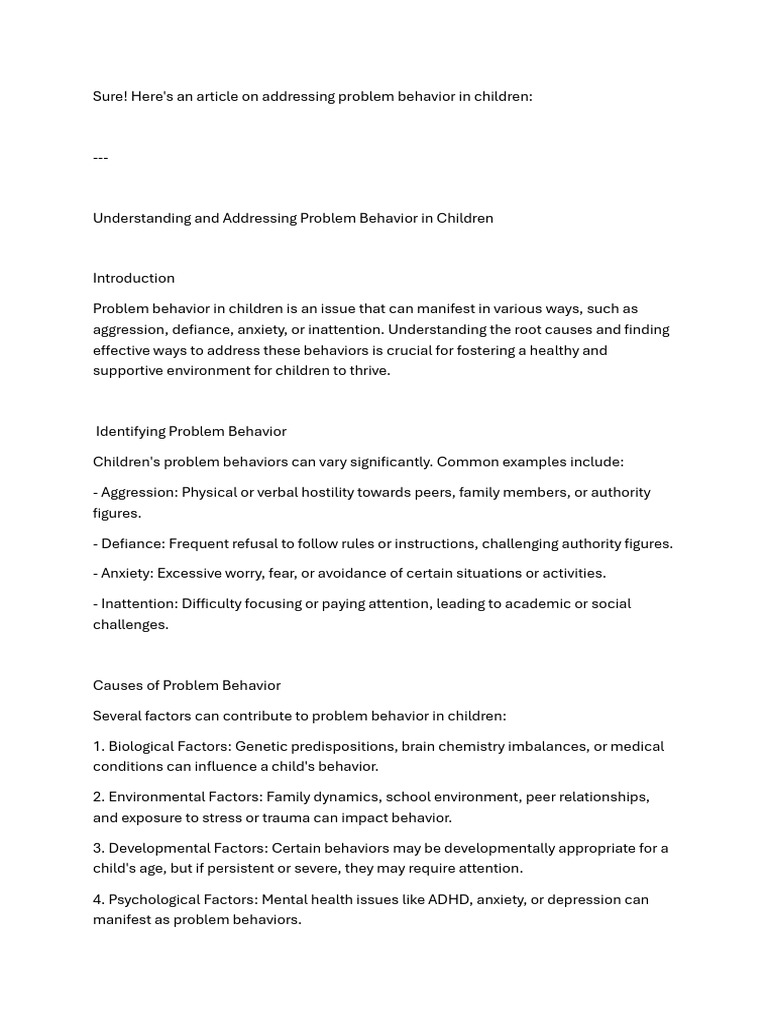 Understanding The Problem of Behaviour in Children | PDF | Behavior ...