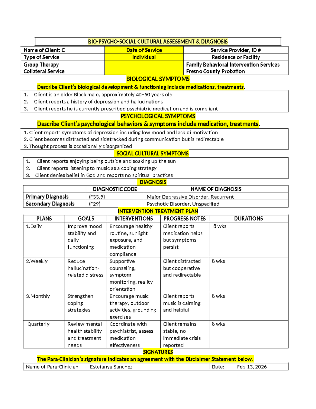 #2 - BPSC Assessment: Client Diagnosis & Treatment Plan - Studocu