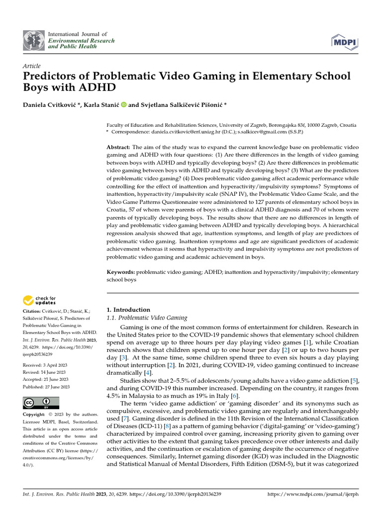 Predictors of Problematic Video Gaming in Elementary School | PDF ...