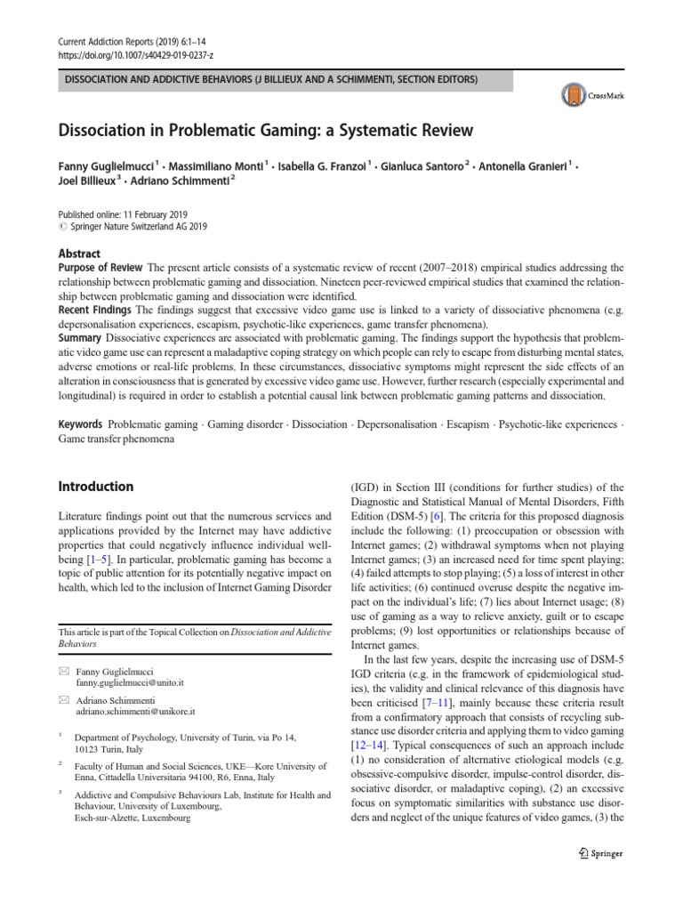Dissociation in Problematic Gaming: A Systematic Review | PDF ...