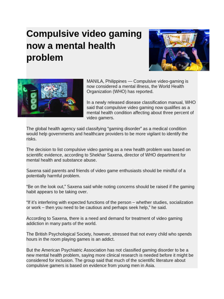 WHO Classifies Gaming Disorder as Illness | PDF