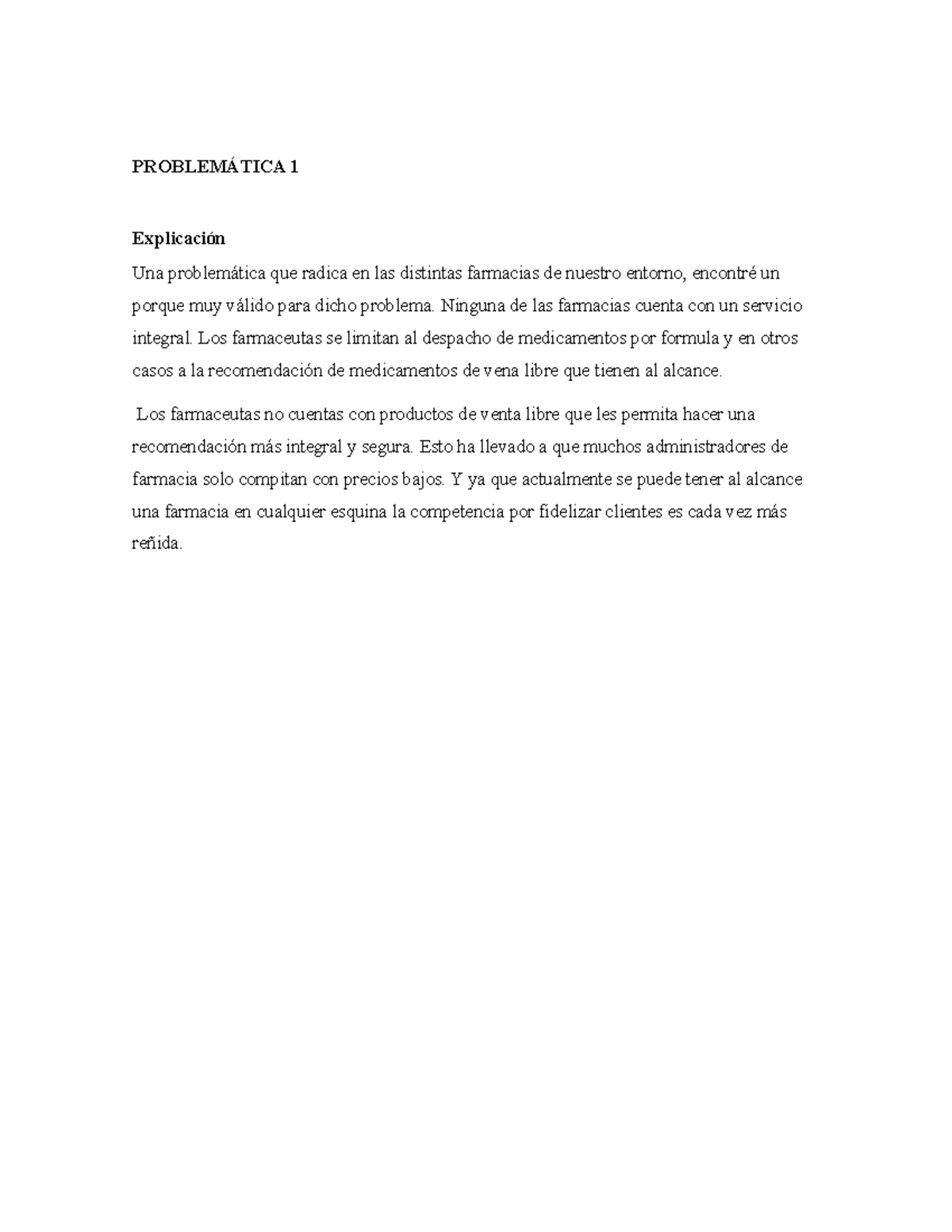 Análisis de la Problemática - PROBLEMÁTICA 1 Explicación Una ...