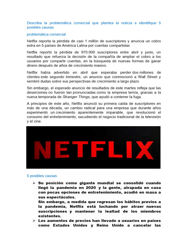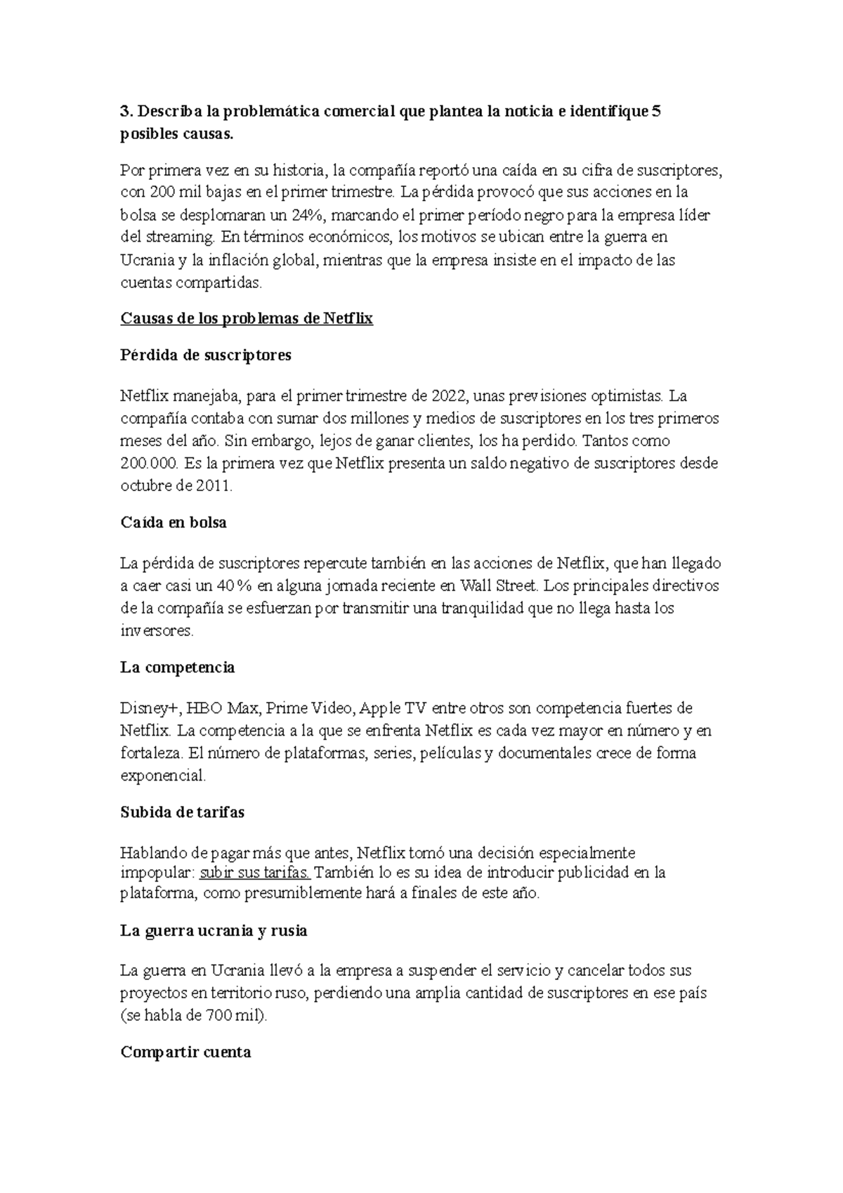 Resumen - Describa la problemática comercial que plantea la noticia e ...