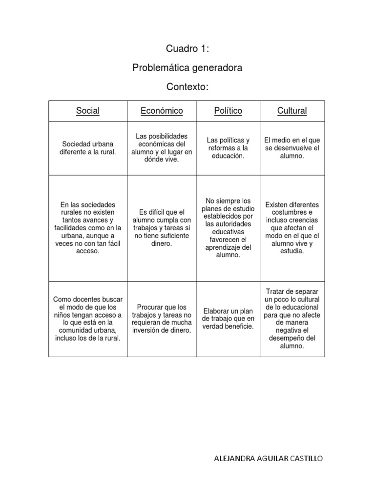 Cuadro de La Problemática Generadora de Los Contextos Social | Plan de ...