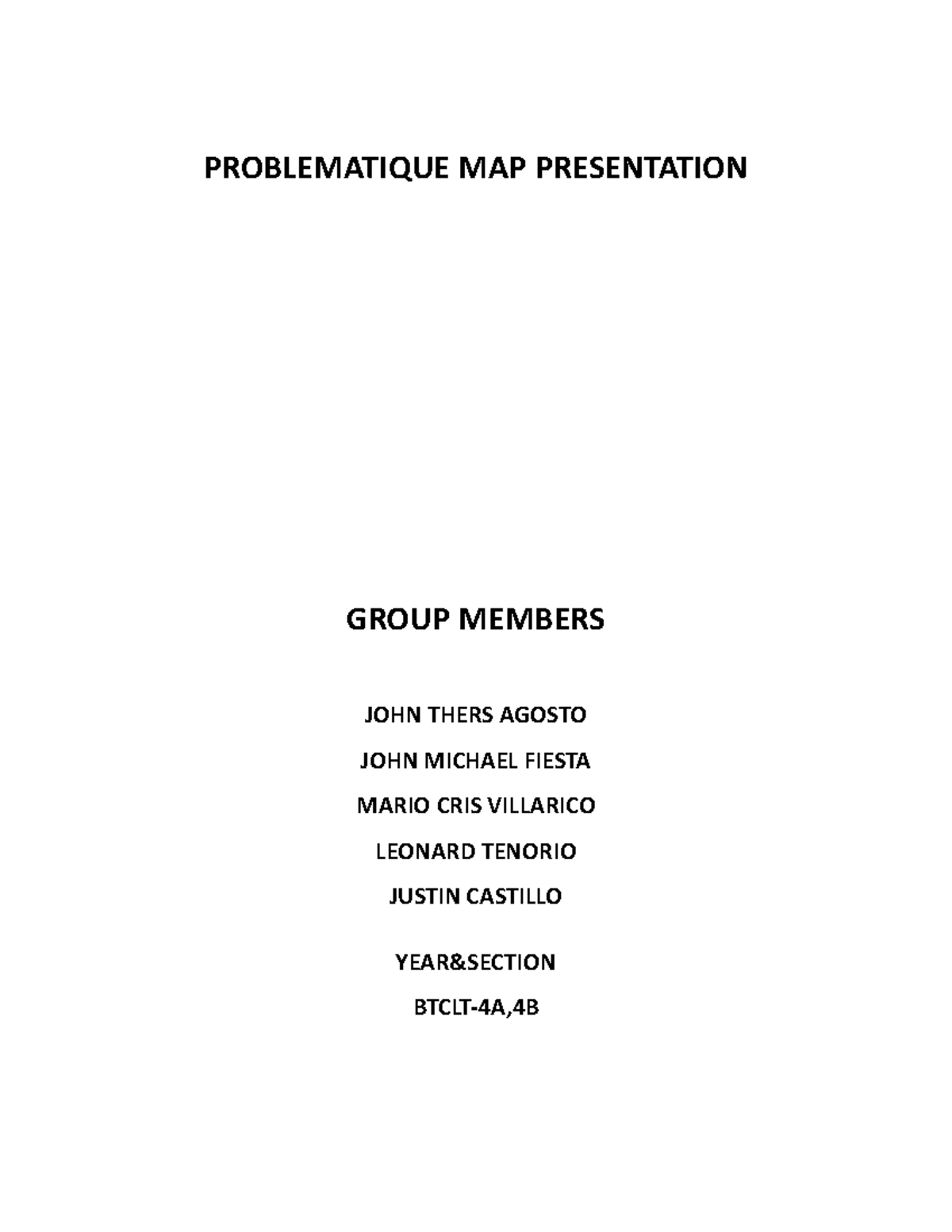 Agosto- Group - PROBLEMATIQUE MAP PRESENTATION GROUP MEMBERS JOHN THERS ...