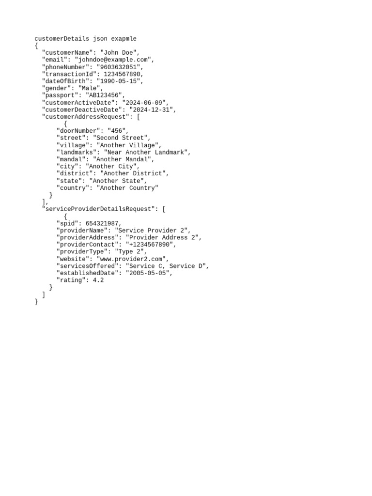 CustomerDetails Json Exapmle | PDF | Social Science | Law