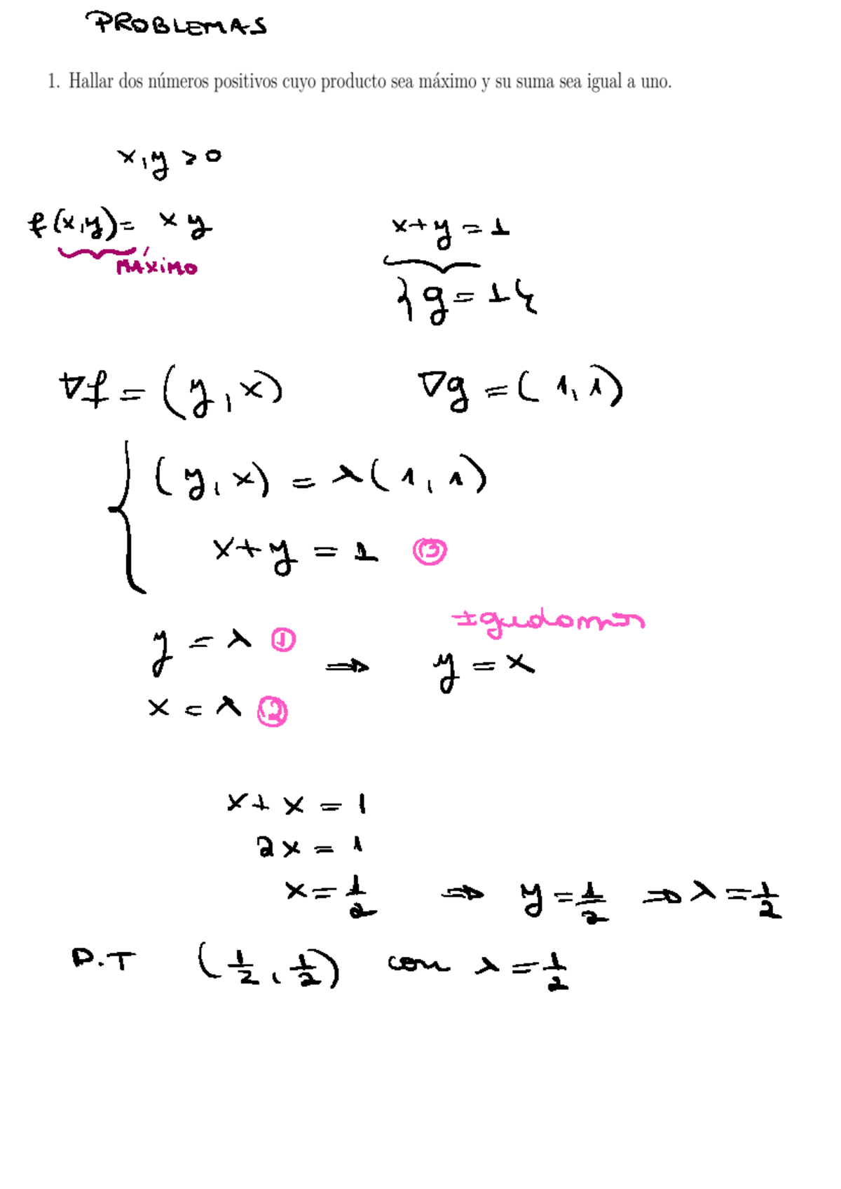Todos - Problemns - PROBLEMAS Y , y > f(x , y) = X y x + y = 1 Máximo ...