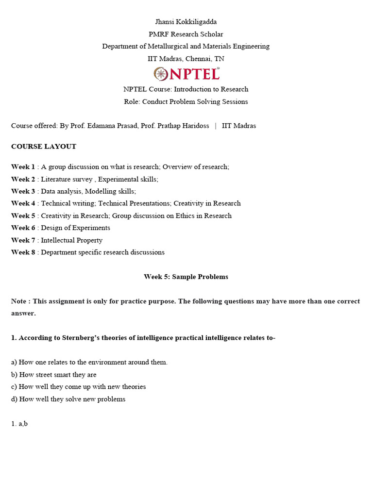 Week 5 - Sample Problems - 26-03-2024 | PDF | Creativity | Informed Consent