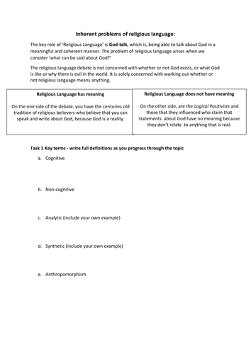 Inherent Problems of Religious Language (Eduqas) | Teaching Resources