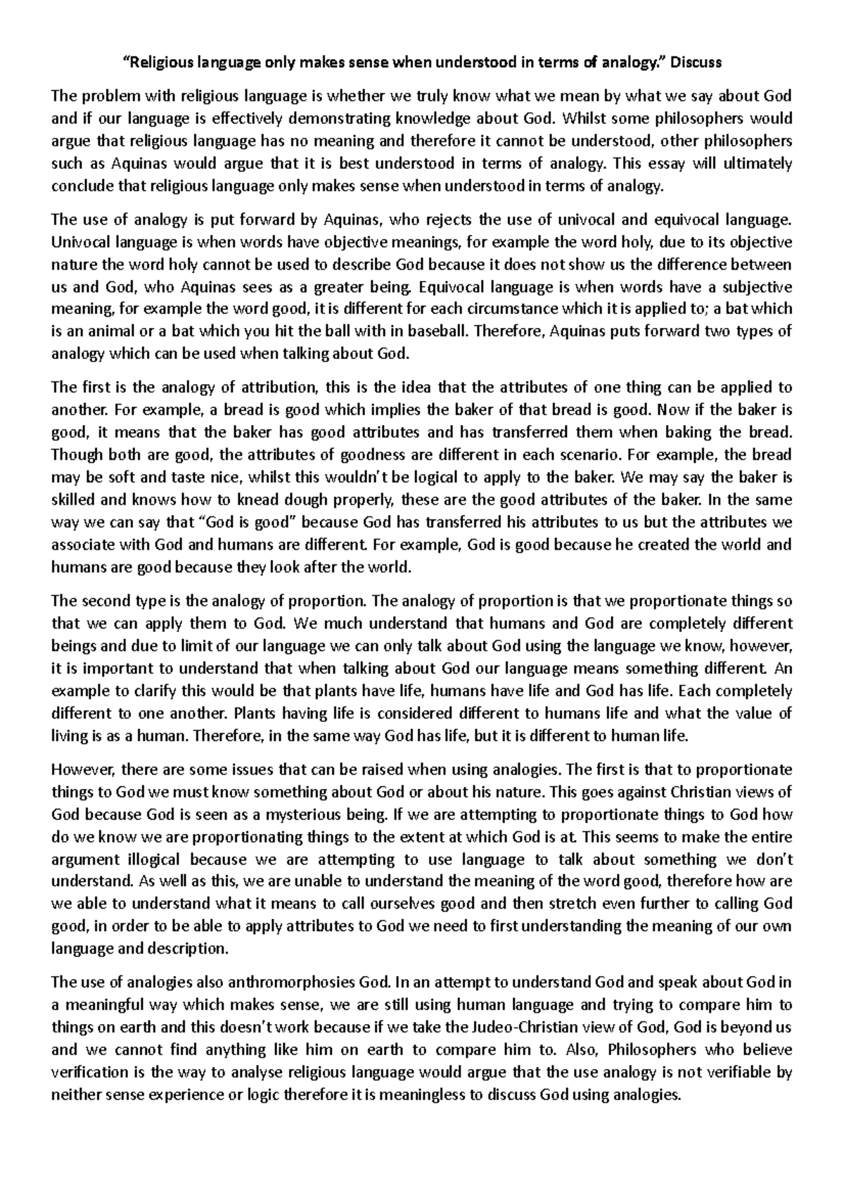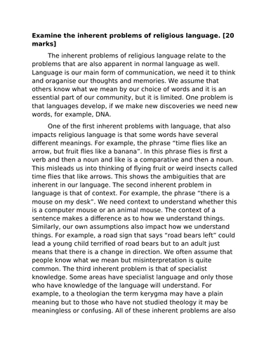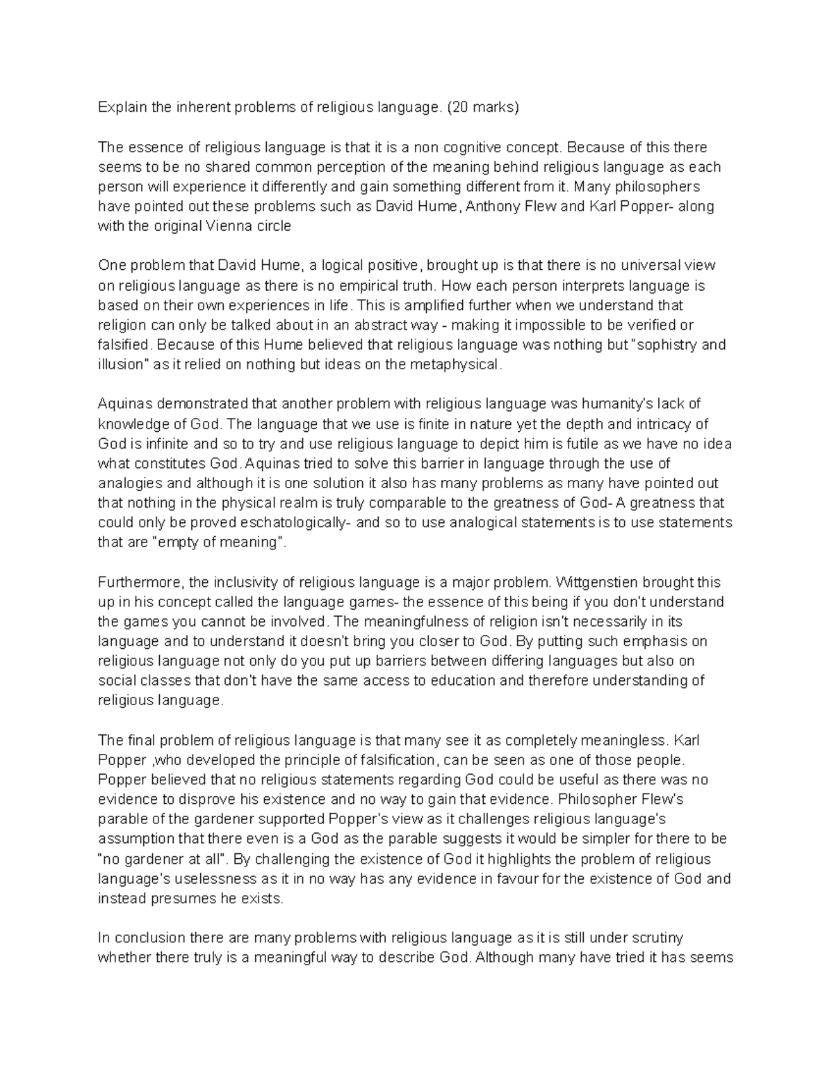 Problems with Religious Language: In-depth Analysis (20 Marks) - Studocu