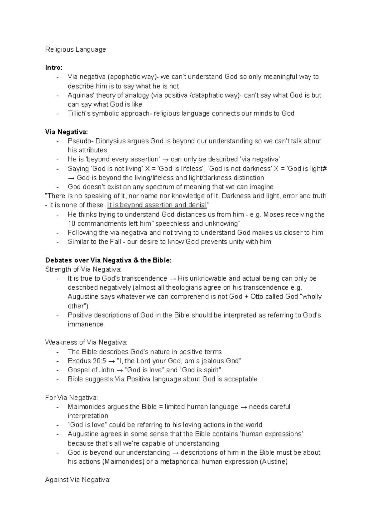 Summary Religious Language - AQA A-Level Religious Studies, Philosophy ...