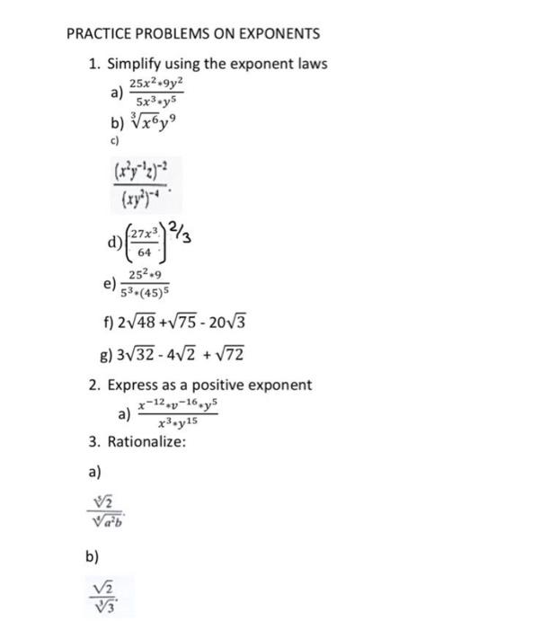 Solved PRACTICE PROBLEMS ON EXPONENTS 1. Simplify using the | Chegg.com