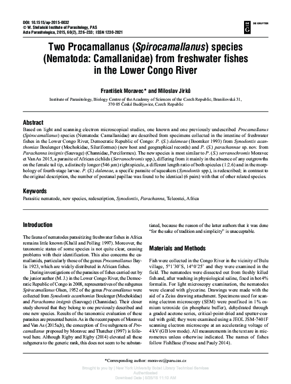 (PDF) Two Procamallanus (Spirocamallanus) species (Nematoda ...