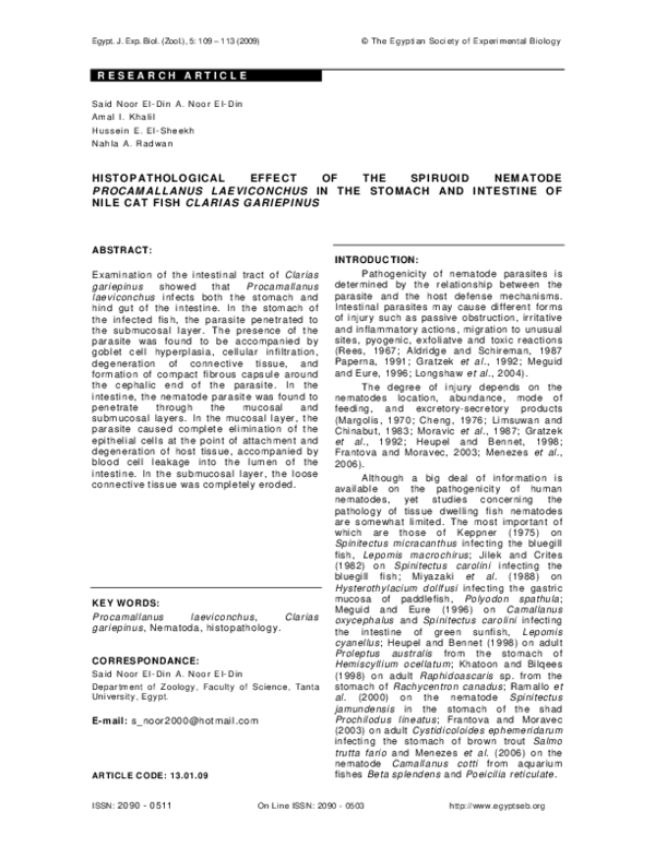 (PDF) Histopathological Effect of the Spiruoid Nematode Procamallanus ...