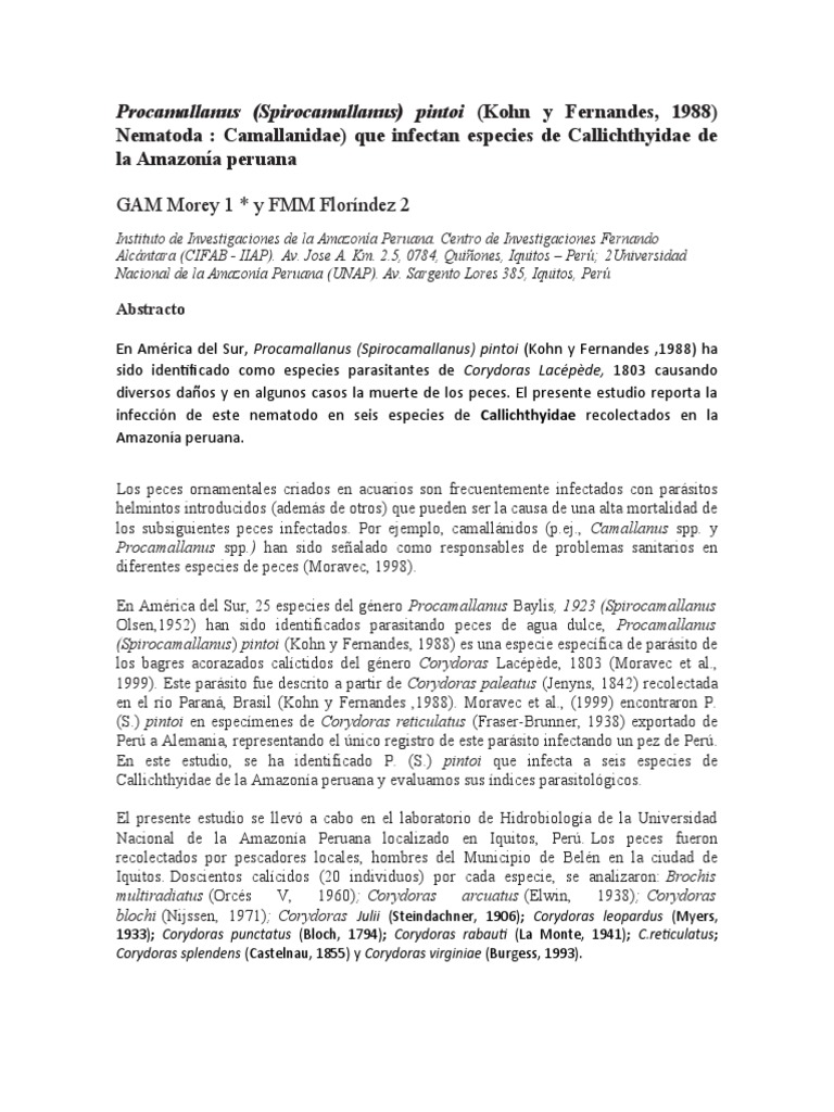 Procamallanus (Spirocamallanus) Cf. Pintoi en Corydoras | PDF | Río ...