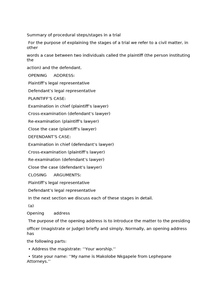 Summary of Procedural Steps | PDF | Witness | Cross Examination