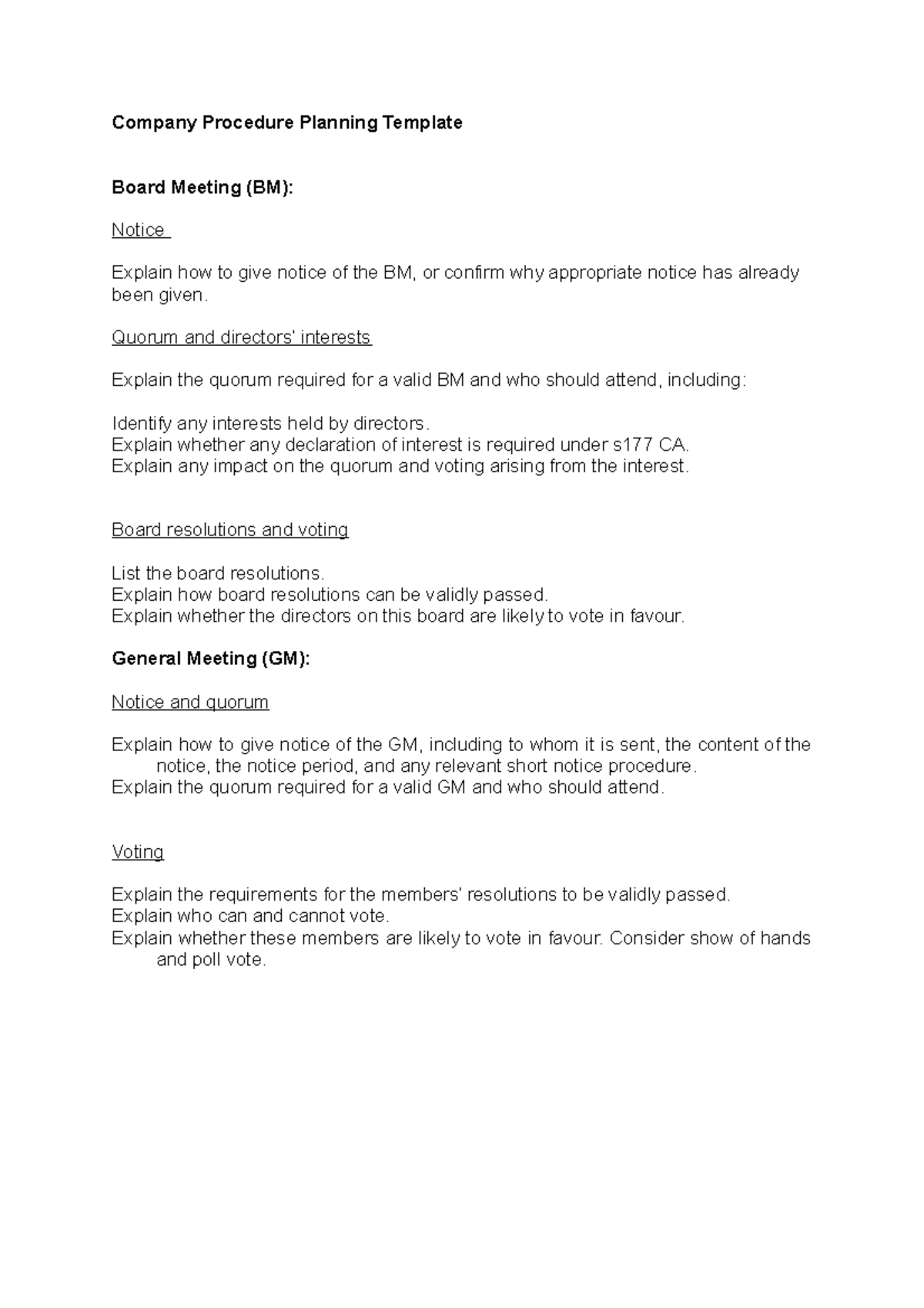Company Procedure Planning Template - Quorum and directors’ interests ...