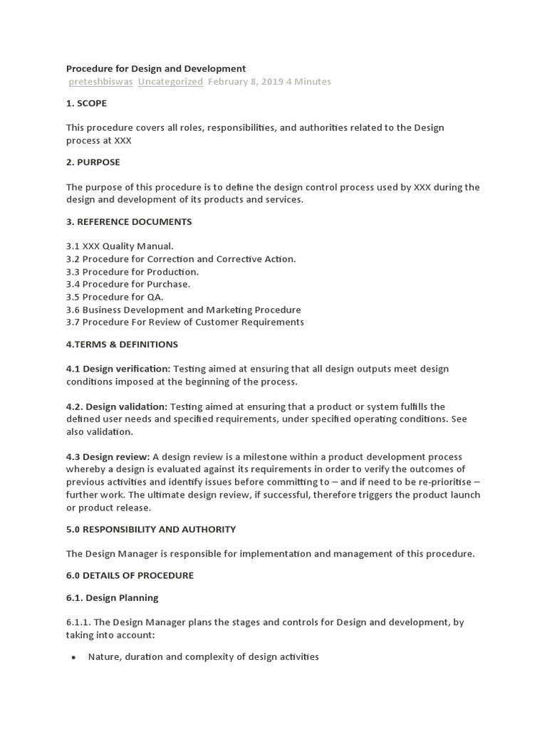 Design & Development Procedure Guide | PDF | Verification And ...
