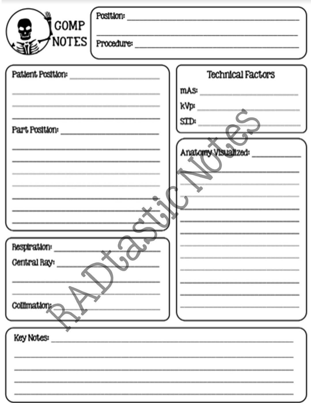 Radiography Positioning & Procedures Notes Template, Radiology Lab and ...