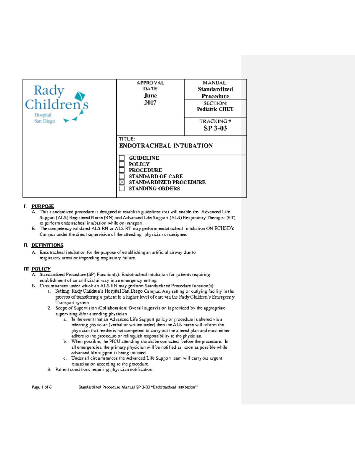 Intubation-procedure - I. PURPOSE A. This standardized procedure is ...