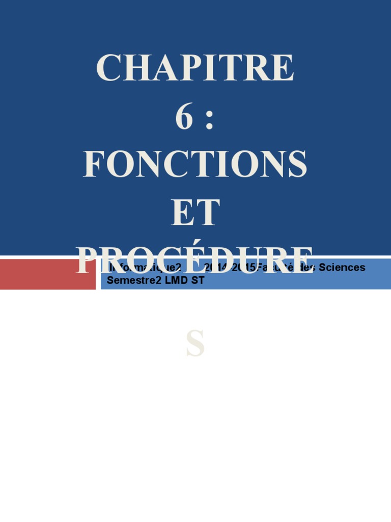 Chapitre 6: Fonctions ET Procédure: Informatique2 2014-2015faculté Des ...