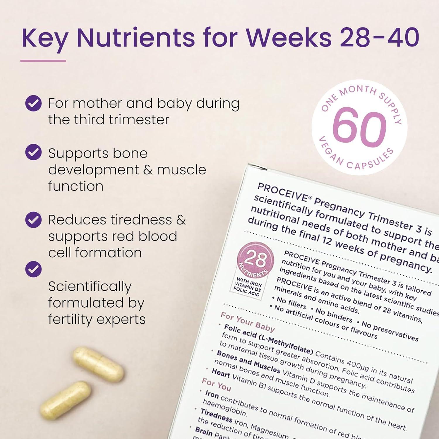 Proceive Pregnancy Trimester 3 (28 Weeks) Vegan Vitamin & Mineral ...