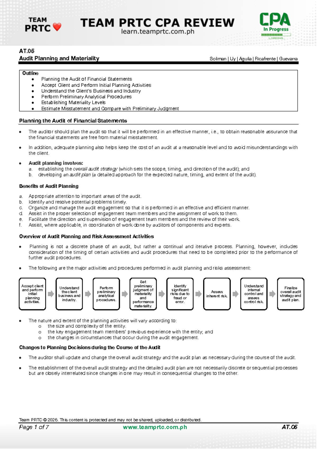 AT.05 Audit Planning and Materiality: Key Concepts and Procedures - Studocu