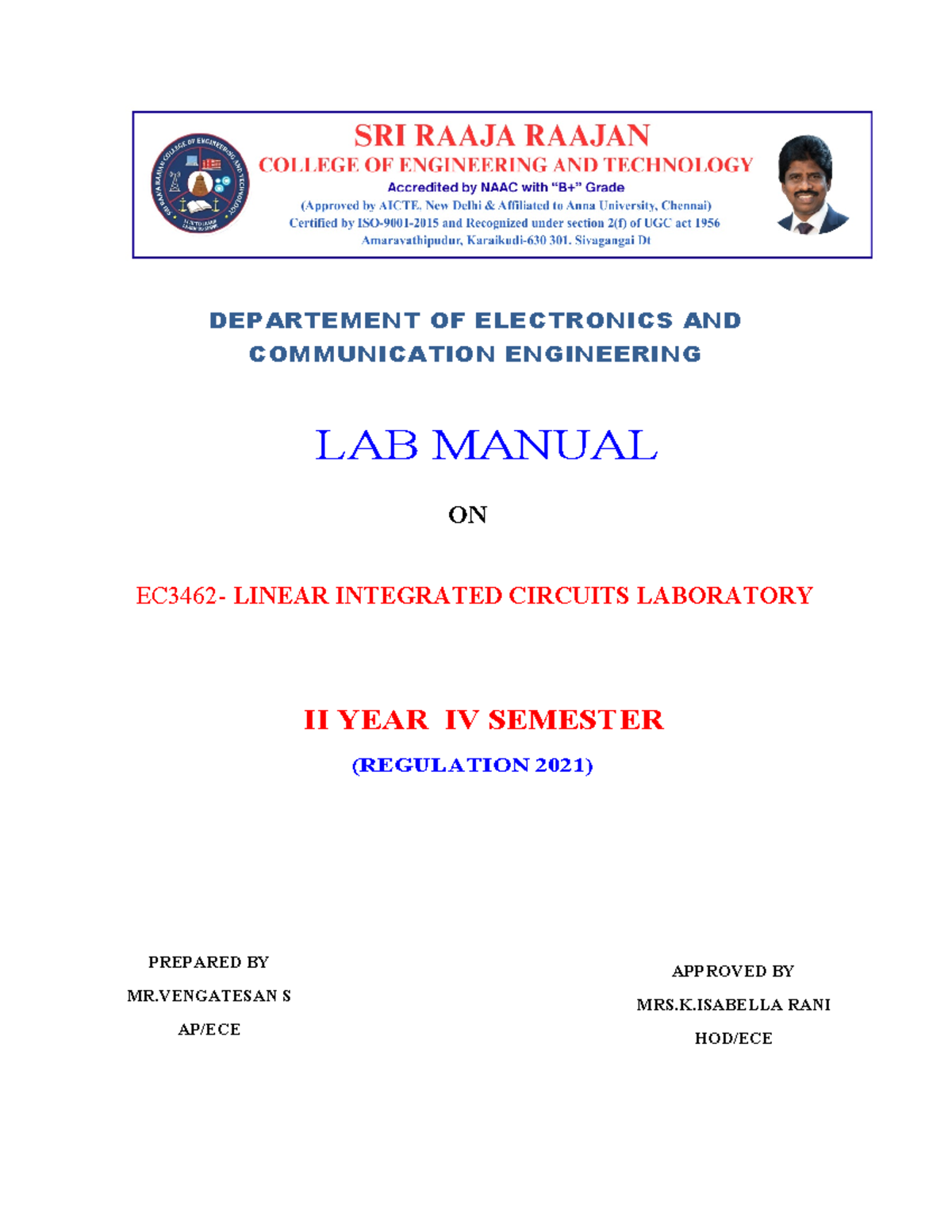 EC3462 Linear Integrated Circuits Lab Manual - Experiments & Procedures ...