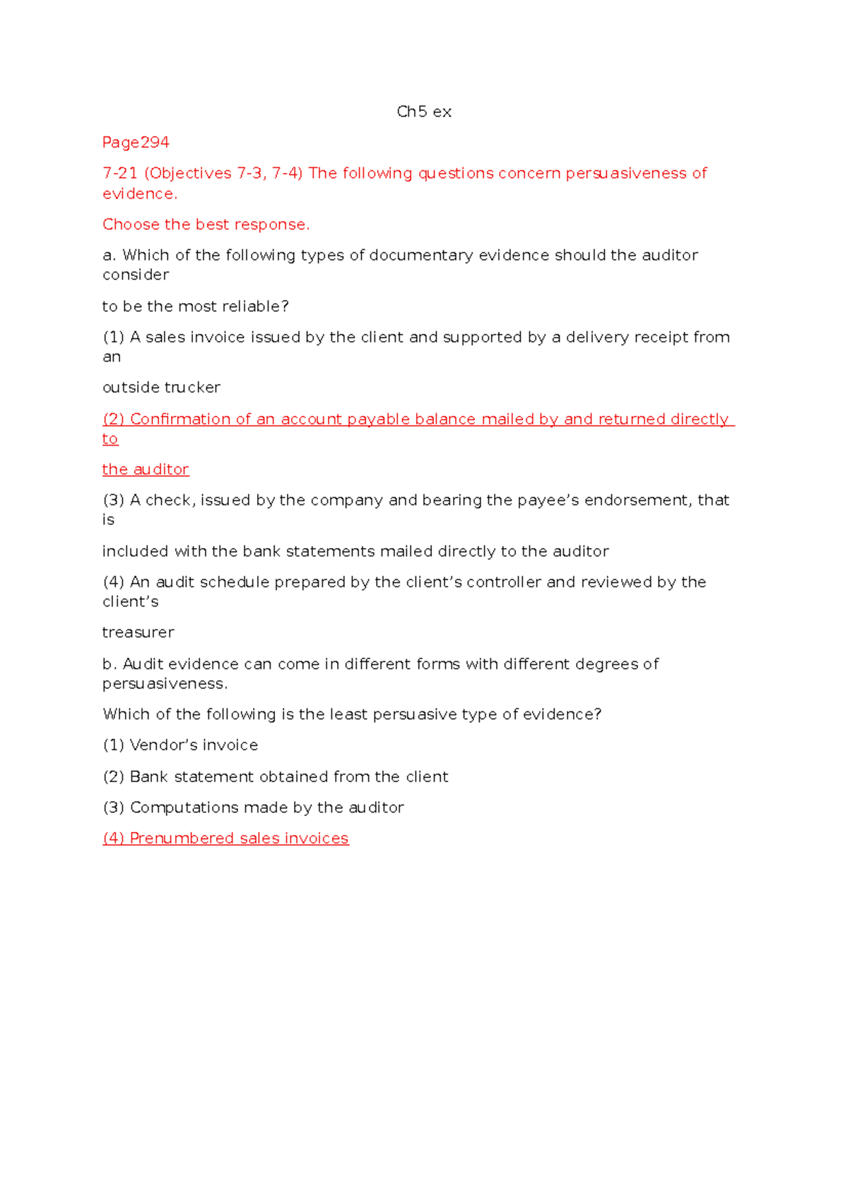 Ch5-Ex: Audit Evidence Persuasiveness & Procedures Overview - Studocu