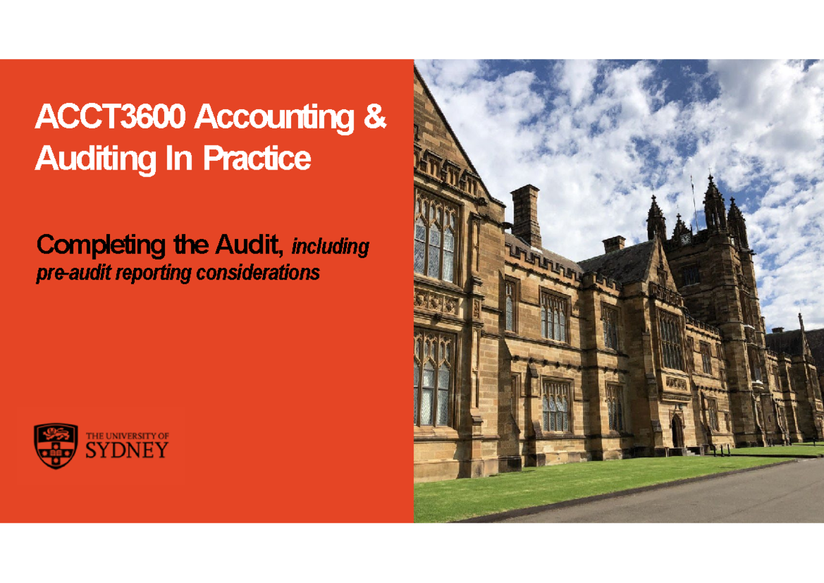ACCT3600 Week 8: Completing the Audit - Key Procedures & Considerations ...