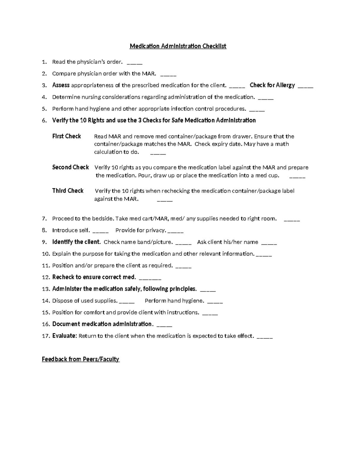 Medication Administration Checklist: Safe Practices and Procedures ...