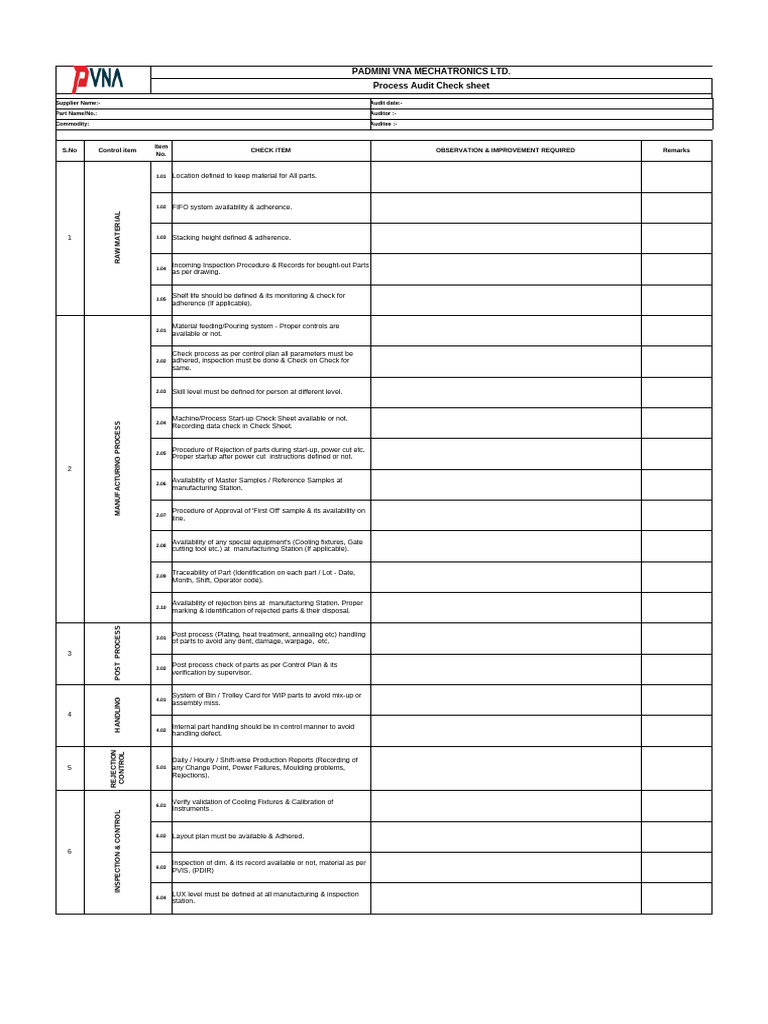Process Audit Check Sheet | Download Free PDF | Applied And ...