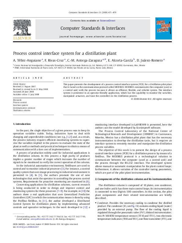 (PDF) Process control interface system for a distillation plant
