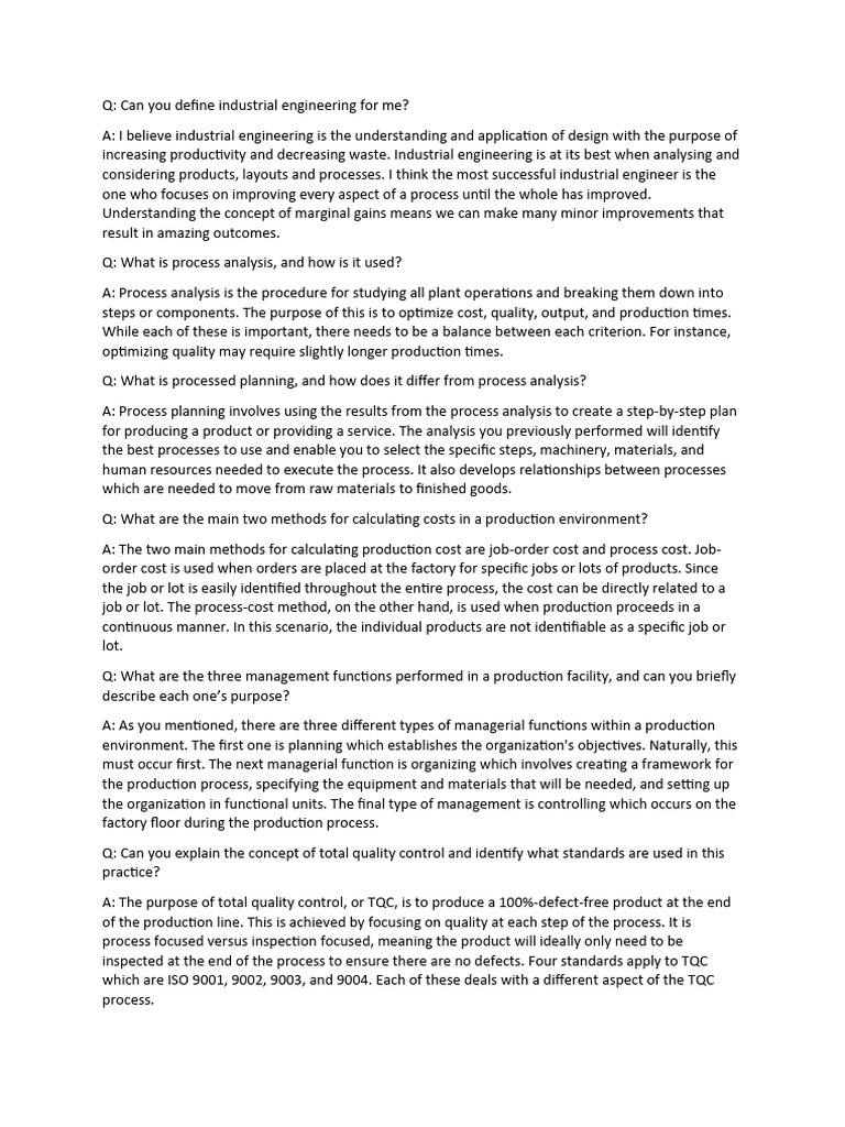 Industrial Engineering Interview Questions at Sandra Miles blog